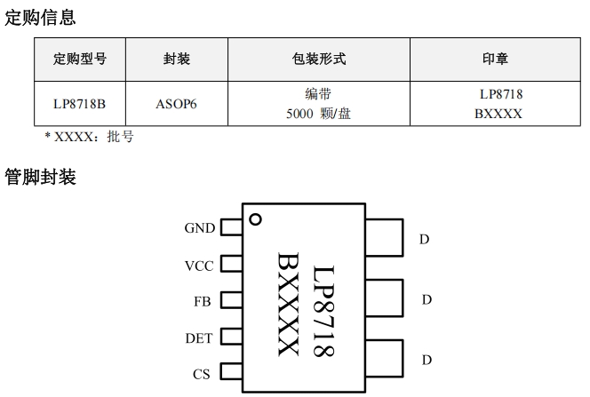 LP8718B 采用 ASOP6 封裝,尺寸緊湊,適合高密度設計,能夠有效節省 PCB 空間。