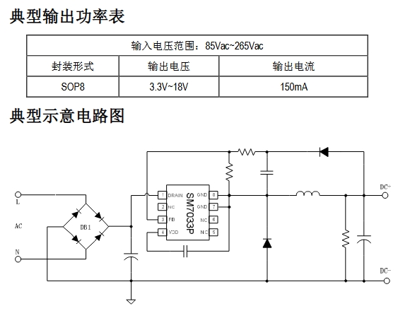 在 IoT 小家電、智能面板或傳感節點里,工程師最怕的就是“待機電源”——功率不大,卻占掉寶貴的 PCB 面積和 BOM 成本。明微推出的 SM7033PK,用一顆 SOP-8 封裝就把 85-265 VAC 輸入、3.3-18 V/150 mA 輸出的恒壓方案做到了極致精簡:整流橋之后,只需 5 個外圍元件即可上電運行,真正讓“小體積”與“低成本”兼得。