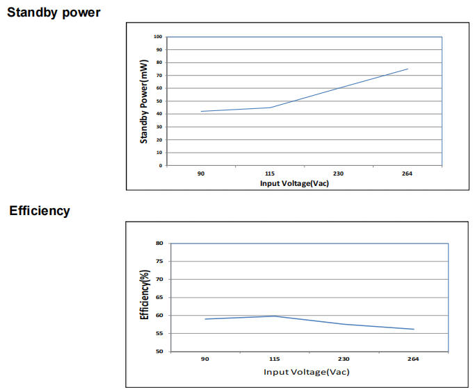 5 V/100 mA:η = 59 %(115 VAC),待機(jī) 62 mW
