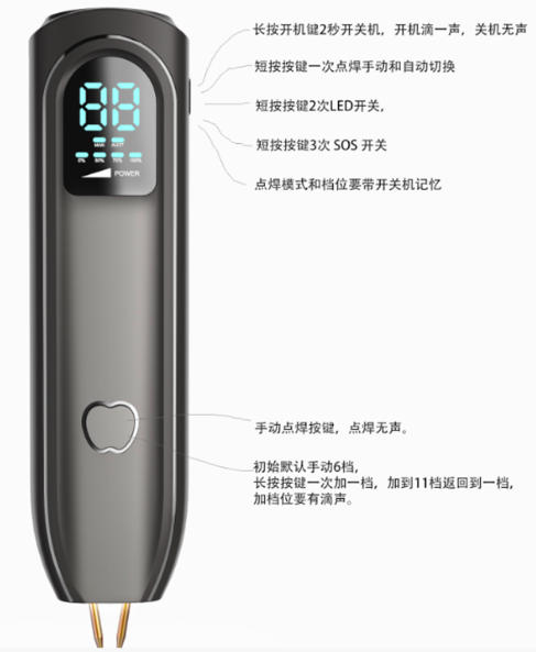 任何模式下連續(xù)短按2次,開關(guān)照明LED,方便昏暗環(huán)境對準(zhǔn)焊點,狀態(tài)掉電記憶。